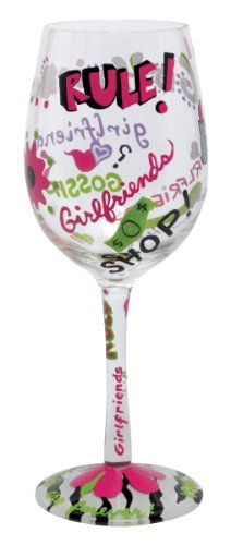 - Lolita licensed hand painted wine glass with girlfriends rule wine cooler recipe on the bottom of the stem